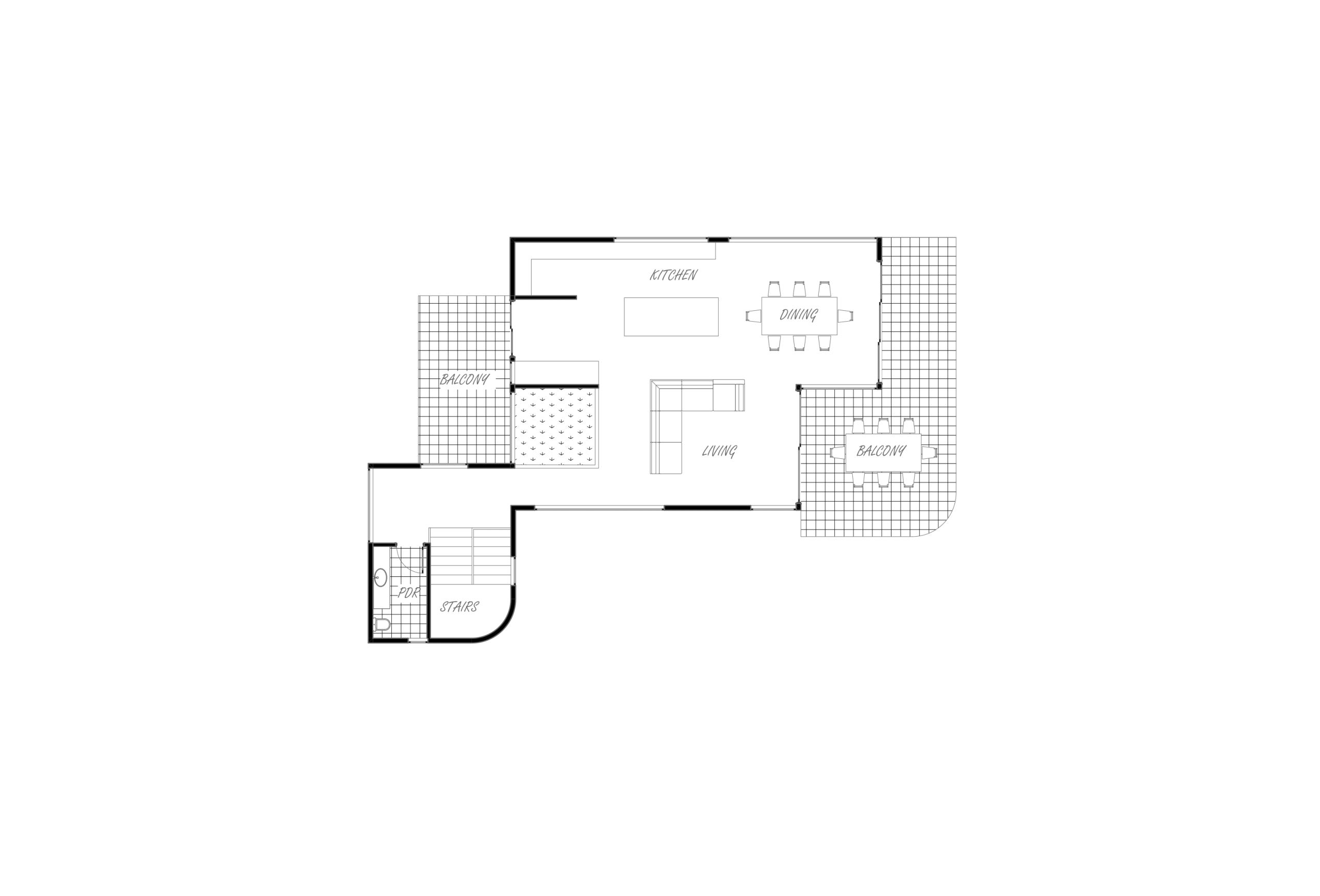 High-performance uPVC glazing ensures energy efficiency and year-round comfort, while expansive balconies and an internal garden blur the line between indoor and outdoor living. A stepped floor slab allows the home to nestle harmoniously into the landscape, creating soaring internal ceilings and a seamless connection to the garden surrounds.