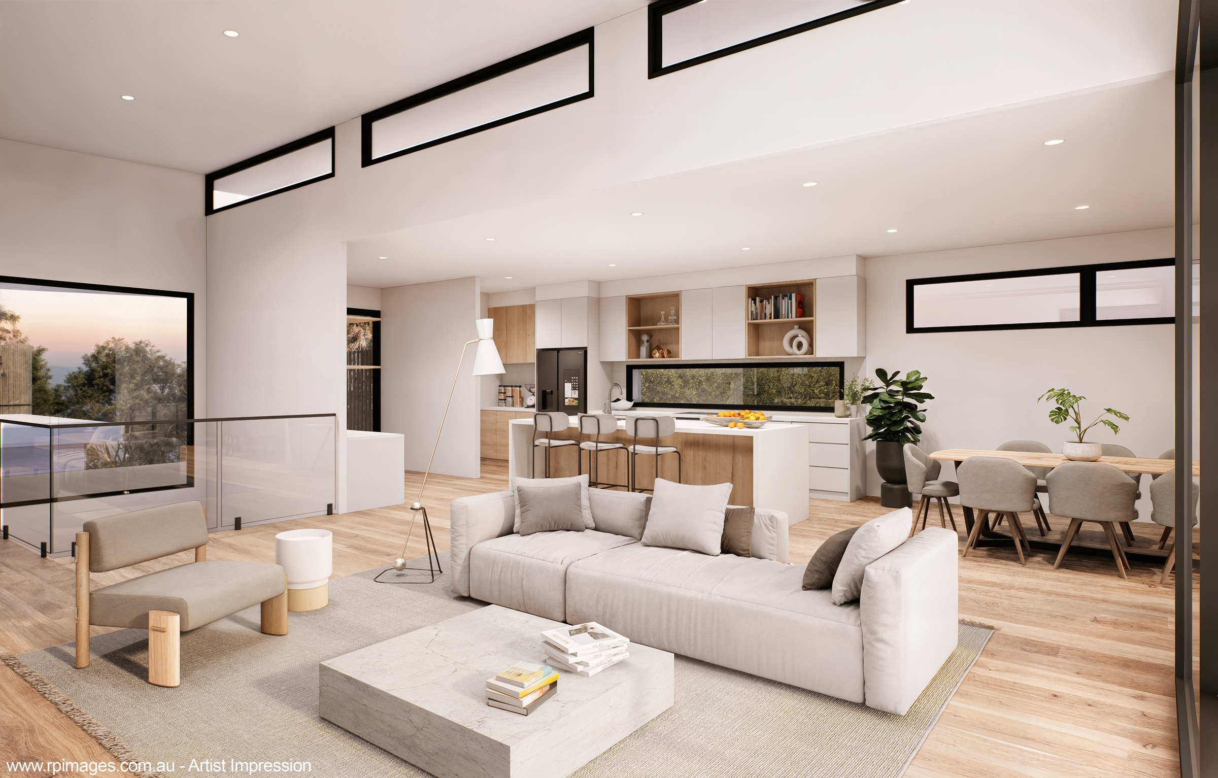 - Open-plan kitchen, living, and dining zones designed for connection and light